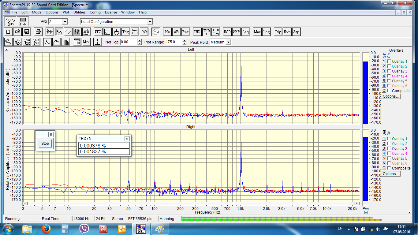 Искажения от 2й до 6й гармоники во всём частотном диапазоне. На мощности 10-20Вт. Точнее не скажу. Вообщем комфортная громкость на тугих колонках чувствительностью в 82Дб.