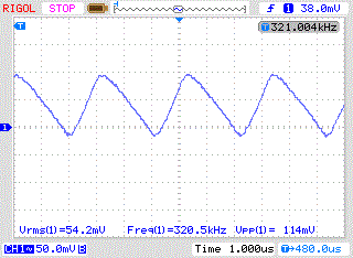 Тем не менее, преобразователь работает. Частота 320к, пульсации 50мв скз. Напряжение 13,2В