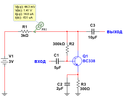 1. Несмотря на питание 3В, эта схема имеет гораздо большее усиление, чем самый первый вариант с "навесным" конденсатором