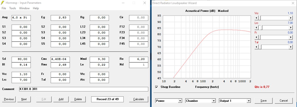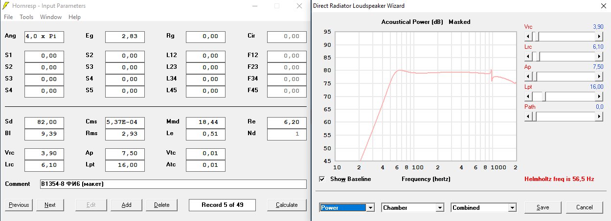 взял рекомендуемое оформление асалаба на этот динамик (6л порт 12.6см2 16см) - вообще 64 м/с