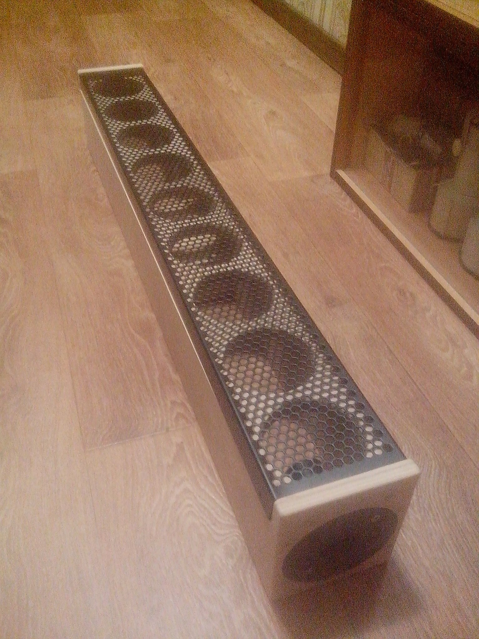 Viktor S, а сделаны изначально для меня на заводе, по моим чертежам(высечка штампом 7мм из листа 1,5мм, а дальше гибка на 90 градусов кромок ну и порошковая покраска).... Да забыл сказать палки активки, сегодня буду монтировать блоки усилков(тоже моего изготовления), и так же на заводе гнули и резали лазером рисунки по моим чертежам панели и корпуса блоков... сегодня сфотаю...