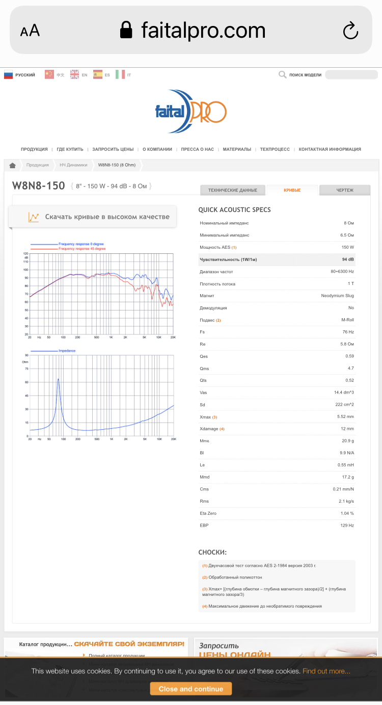 Импеданс ( и следовательно АЧХ ) моей пары файталов 12’’ измеренной дважды, в том числе Г. Крыловым, совпадает абсолютно с заявленной картинкой на сайте.