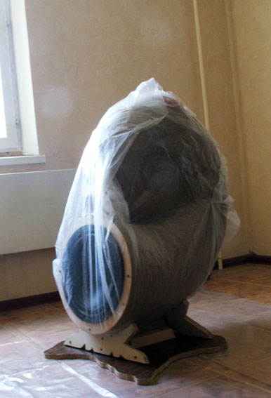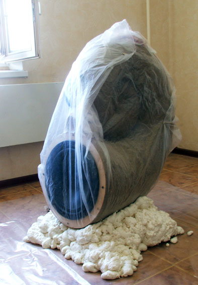 После высыхания пены срежется лишний целлофан...и получится поверхность, почти идеально повторяющая нижнюю часть раструба улитки...