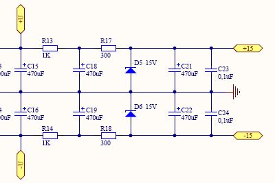 Стабилитроны хочу поставить. Могу, конечно, и 7815/7816, но я не люблю излишества. Вопрос лишь хватит ли для питания 1,3W стабилитрона или надо брать на 3W стабилитрон? И какой ёмкости использовать электролиты, которые ближе к ножкам ОУ (после стаба)?