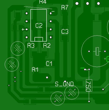 Вероятно, питание ОУ у меня вышло не слишком удачное.. Стабилитроны там где дырочки по дорожкам слева.