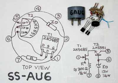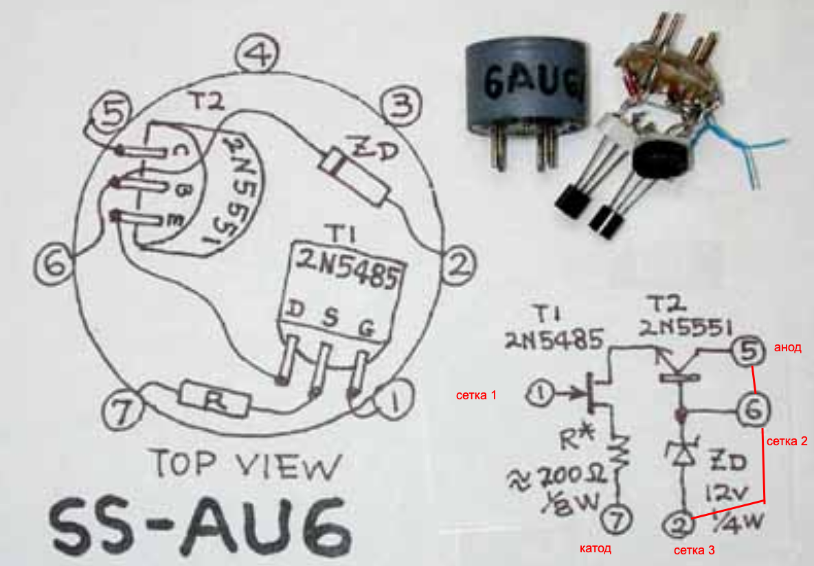 И да, в звуковом применении 6ж4п -это нестандартное применение лампы. Просто японцы в 60-х годах прошлого века перебрали кучу ламп и выбрали 6AU6 (импортный аналог 6ж4п) для микрофонов СОНИ. Там же , где то на форумах предлагали и такую транзисторную замену для лампы. Вот только у меня не сохранилось откуда я скопировал эту схему и нюансы подключения лампы, куда ставится такая замена.