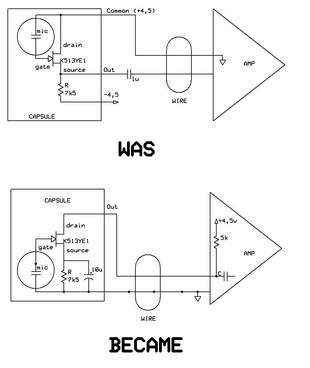 Это абсолютно разные микрофоны-капсюли, но в обоих стоят К513УЕ1А и Общий плюсовый .......