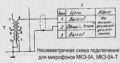 Первичная обмотка аудио-трансформатора (со стороны микрофона и батарейки!), то есть ножки 1 и 5 в моих МКЭ-5Б были включены наоборот чем в МКЭ-9....