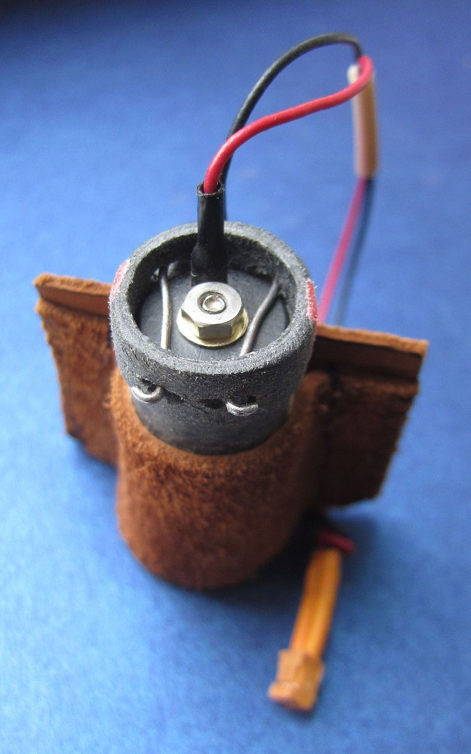 Батарейка-Аккумулятор: так как у меня всё уже давно готово, в том числе и баночка для батарейки CR2 ручной работы которая заняла приличное количество времени и силы, то маловероятно, что я смогу этим обновлением занятся......... кстати, подобных посудин для батареек я и не видел, потому и решил сам делать...... кожаный карман крепится на нижней деке с помощью липучки Velcro, также как и микрофон на ножке........