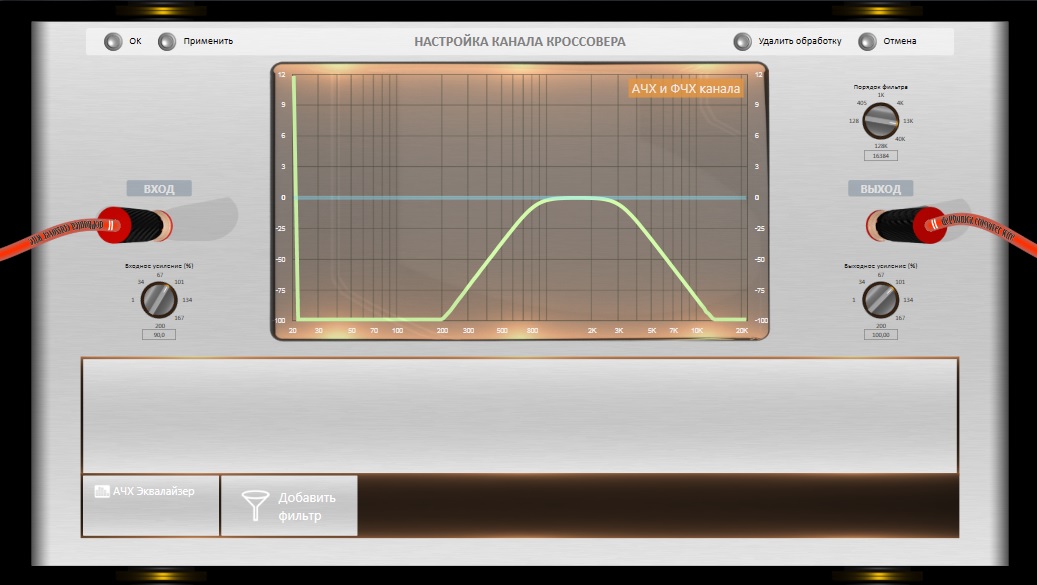 Господа! Представляю вам свою разработку. Изначально это была консольная программа-кроссовер, которую я сделал для использования с НЧ акустикой требовательной к фильтрации сигнала (tapped horn). А недавно у программы появился графический интерфейс к консольной части и я решил, что возможно мой кроссовер будет полезен кому-то ещё.