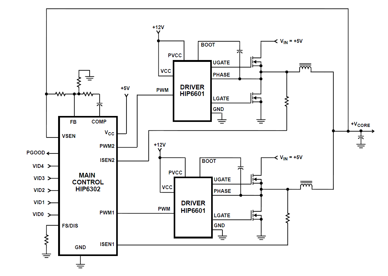 Вот смотрите, по моему идеально, и синхровыпрямители, и 2 фазы... http://datasheet.su/datasheet/Intersil/HIP6302CB-T
