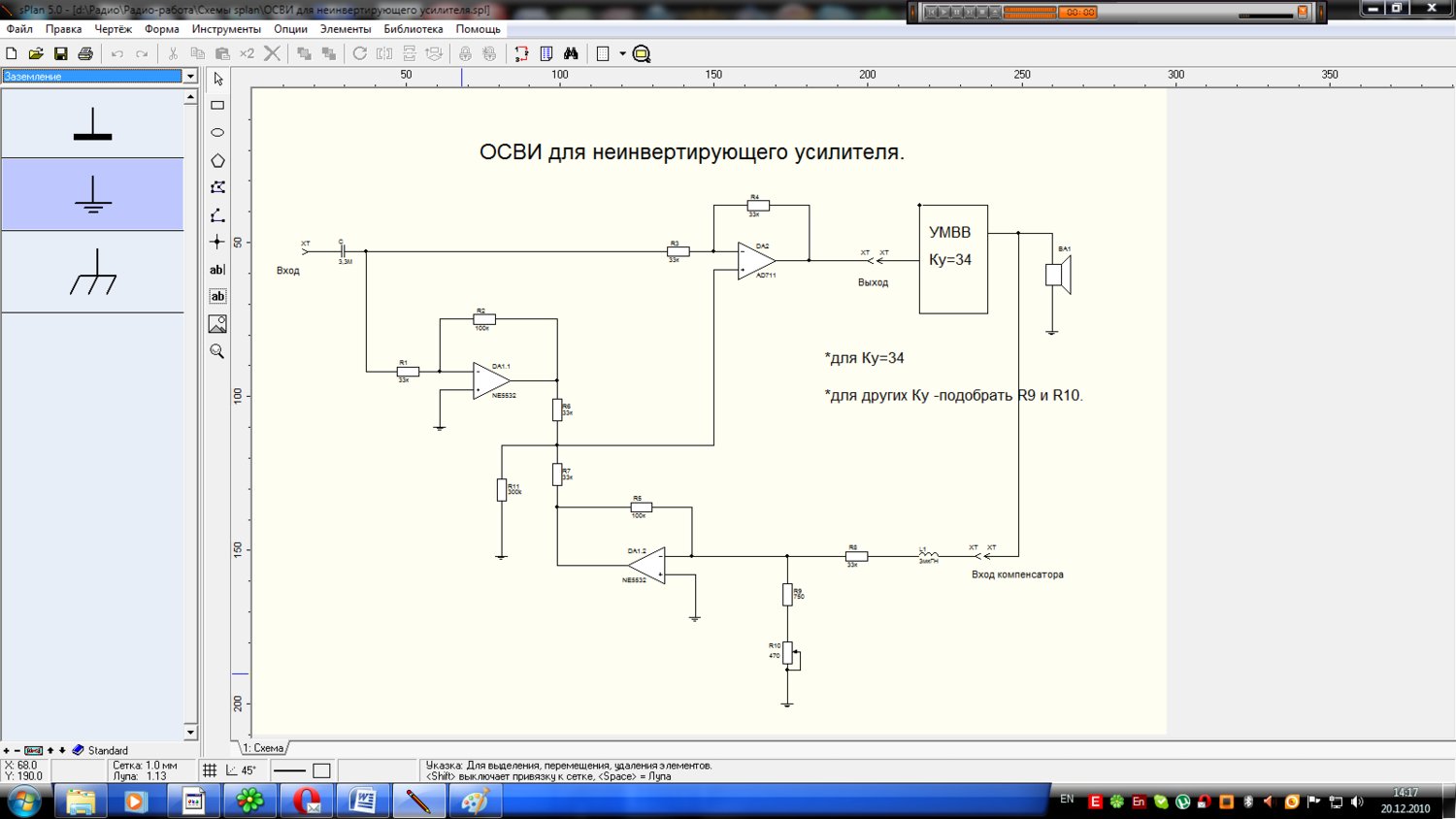 Вот так я рассуждал, когда начинал моделирование. Почти сразу же выяснилась одна неприятная вещь. Схема сравнения выполнена на операционнике, включенном по схеме компаратора!!!!! А как работает компаратор на микросхеме с огромным усилением без обратной связи мы знаем. Есть, правда, начальный линейный участочек. Он и используется, но малейший уход в сторону от ПРЕЦИЗИОННОЙ настройки грозит либо возбуждением, либо полным затыканием. Мне теперь понятно, почему испытавшие усилитель О.Руссо получают разные результаты. Разная настройка. А что при нагреве деталей, при их старении? Идея блестящая, но реализация никудышная. Было принято решение разрабатывать свой вариант. Так как я не люблю ковырять готовые работающие изделия и для облегчения эксперимента принято решение разработать приставку, которую можно в виде платы установить перед входом усилителя или же использовать отдельно, как приставку. В итоге получилась очень простая и универсальная схема. Ее можно использовать как с безООСниками, так и с ООСниками. Надо только пересчитать входной делитель и произвести очень простую настройку, а если есть оборудование для измерения искажений, то подстроить по минимуму искажений. Пишу в ОФИСЕ. К письму прикрепляю картинку. Не уверен, что я все делаю правильно. Если картинка не дойдет, прошу подсказать, как в этом Форуме прикреплять файлы. На картинке показана схема для неинвертирующего усилителя; для инвертирующего усилителя DA1.2 надо перевести в неинвертирующее включение с таким же /=3/ усилением.
