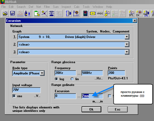 PavelP, график - да (не знаю почему - может недоработка программера ), но ты кликни на саму кривую х-мах - там миллиметры...