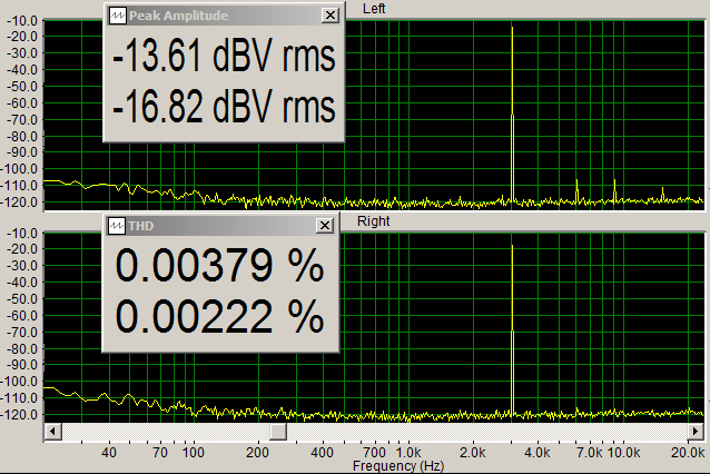 ЗЫ 0дБ =1В левый напряжение на входе LR фильтра (Rвых ЗК 100Ом), правый на выходе Rн 100Ом