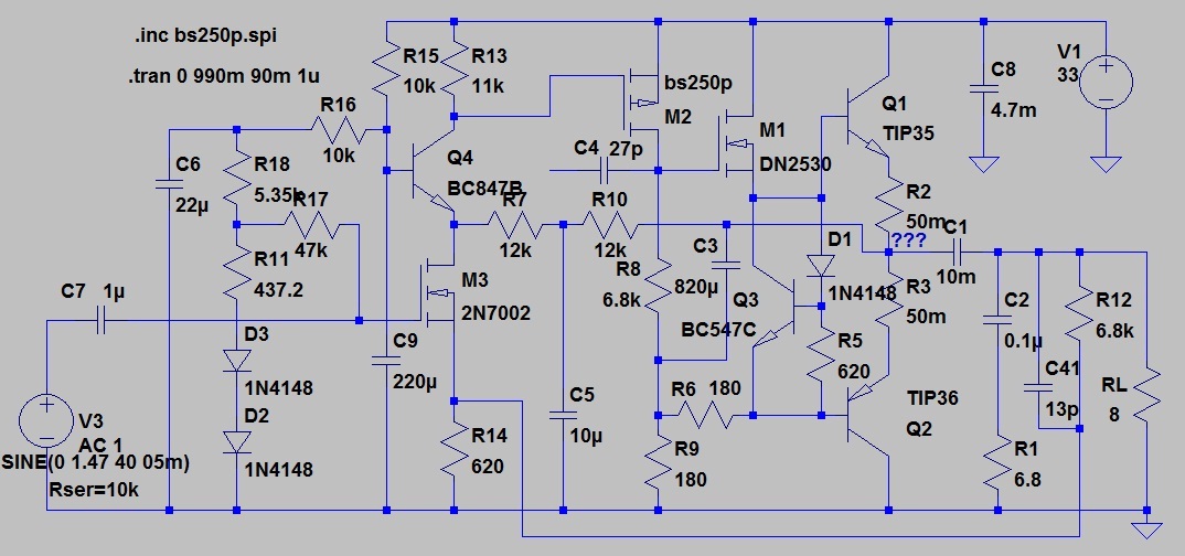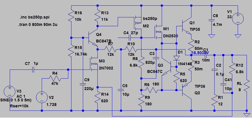 (100HZ) эта пила есть и на высоких . Ниже 400HZ она выходит из ультразвука и её скорей всего вы слышите(в симуляторе она не всегда появляется ).На звуковом сигнале естественно всё ещё страшней .Вот и схема далеко старался не отходить от первого поста , интересно стало чем вам его звук не понравился(На номера не обращайте внимания лень переписывать)