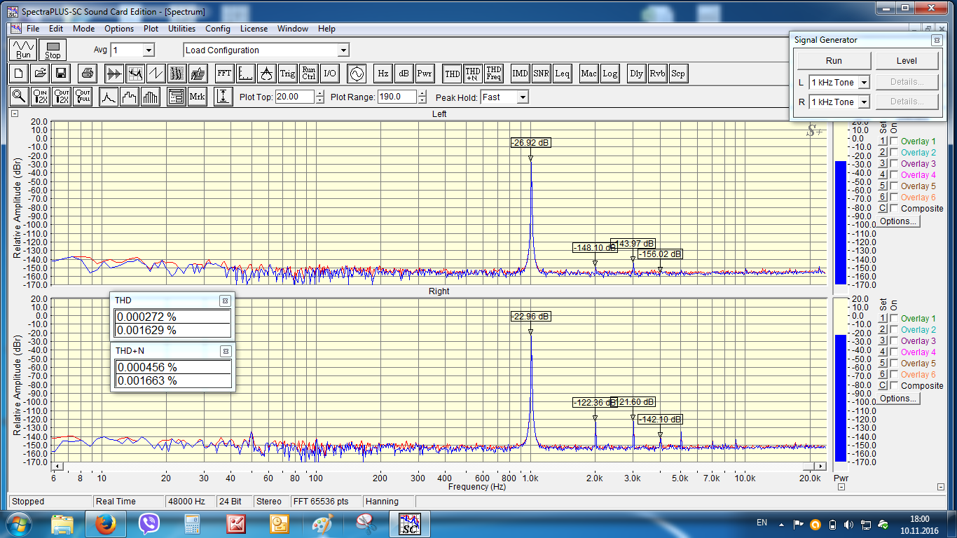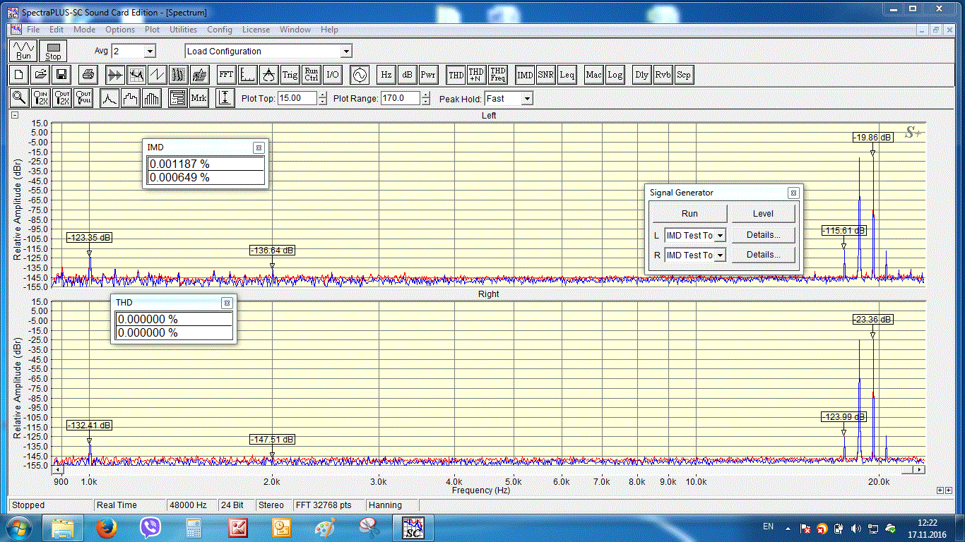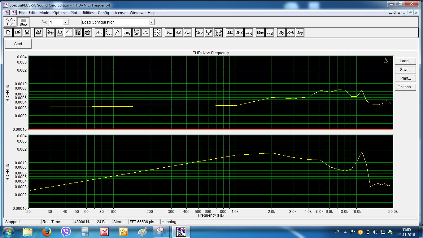 Результаты зафиксированы стразу после сборки, однозначно можно улучшить как КНИ на частотах выше 5к, так и КНИ на большой мощности. Т.е. подстройки я еще не делал.