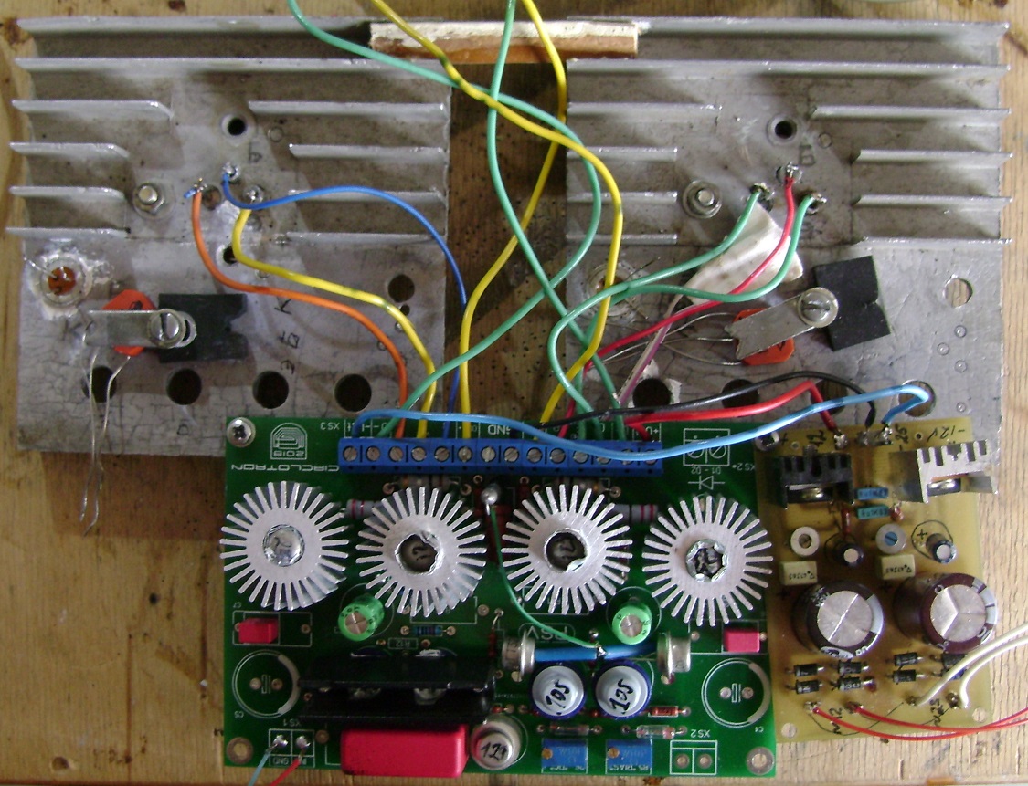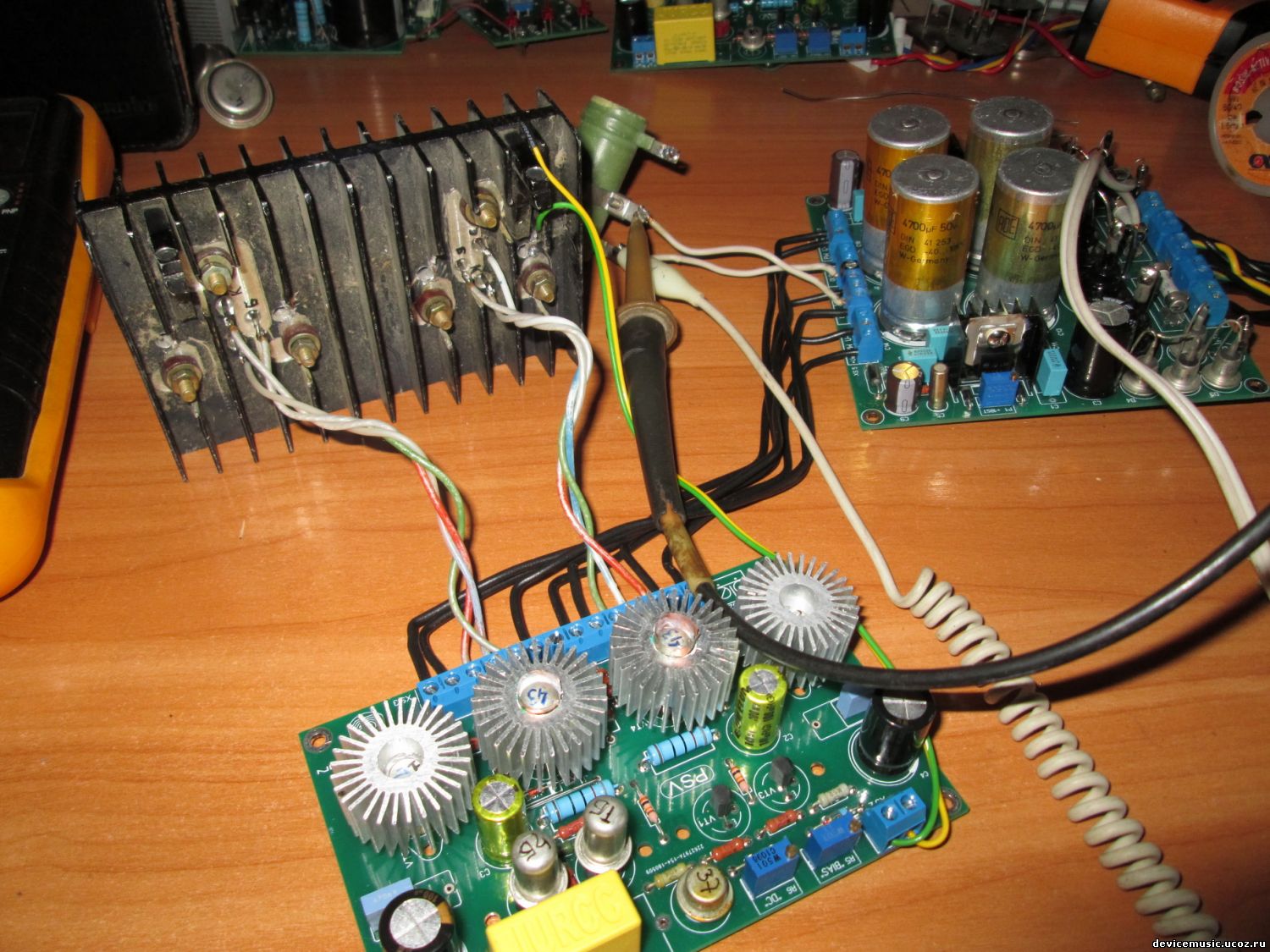 На её ширину начали оказывать влияние соединительные провода, между платой и транзисторами на радиаторах.