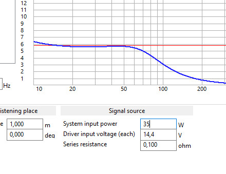 Я понимаю, но хочется, чтобы был запас для отработки пиков музыки без слышимых искажений, а на СЧ чувствительность к искажениям наибольшая (для развитого слуха порядка 0.5% второй гармоники и 0.2% третьей). Вот пересчитал для В100 после ФВЧ второго порядка 500 Гц при 20 Вт, получается не более 0.33 мм при допустимых 1.7 мм (а при 400 Гц не более 0.5 мм), так что запас значительный.