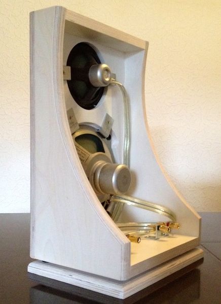 Кстати, я пока что склоняюсь к открытому ящику ( по сути колонка без задней стенки ). Что то в этом духе, как на фото. Хотя некоторые предлагают все же сделать заднюю стенку но с большими круглыми отверстиями, чтоб бас был поглубже.