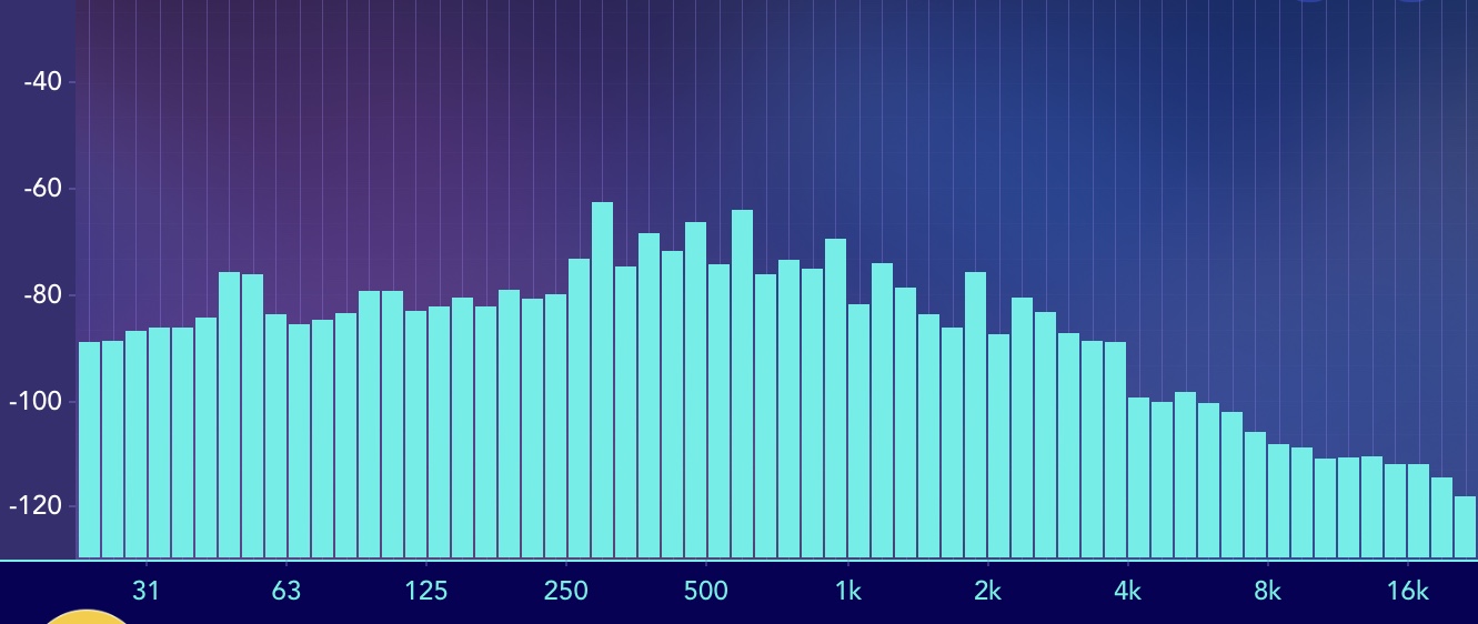 Фрагмент одной из сонат Баха (большой оргАн). Примерно так, хотя фрагменты разные, но чтобы очень низко, практически нет. Но совершенно иная картина будет с сабом и комнатой.