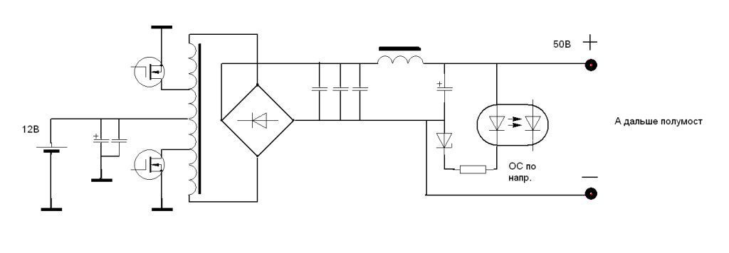 На форуме встречал схему бустер + полумост (кажется Лысый рекомендовал ее для аудио) Подскажите пожалуйста имеет ли смысл собирать для унч такую схему (см. ниже). своего рода пуш-пул автотранс + полумост, нет выбросов - нет снаберов, можно взять сердечник по больше. Нажмите на изображение для увеличения.
