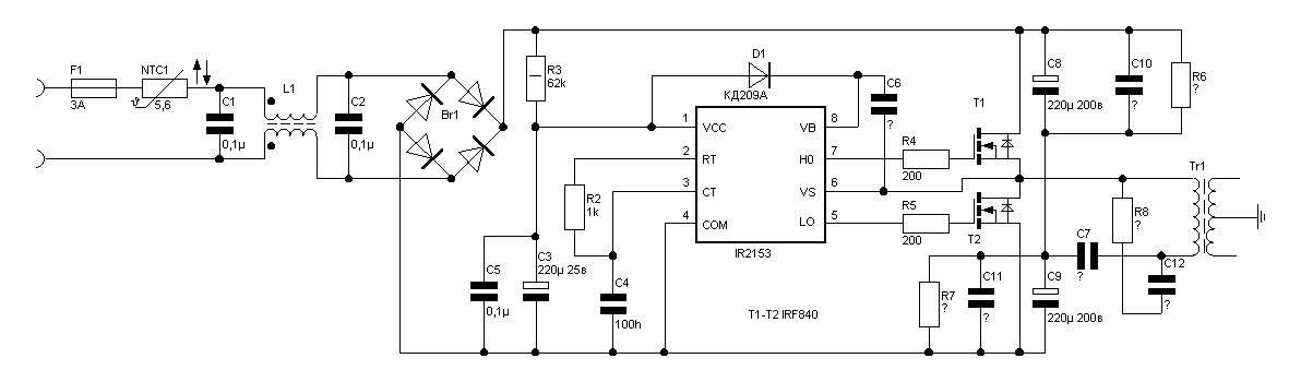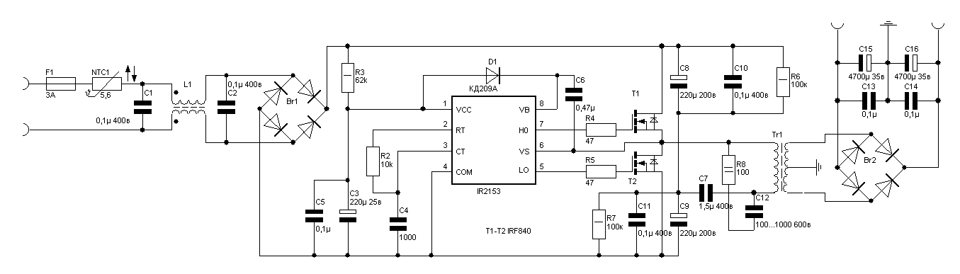 Resistant, Ну вроде нормальноR2 надо будет подбирать смотря какая частота нужна, щас получается примерно 100кгц. R3 надо ставить тоже 2Вт иначе будет раскаляться и вонять