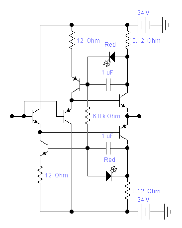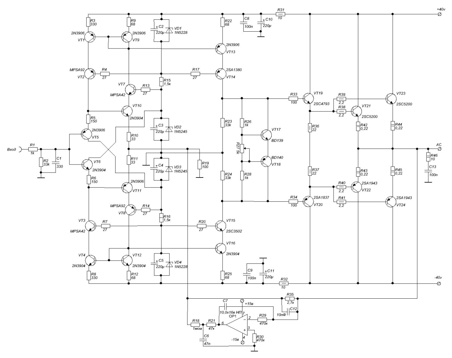 Также считаю нецелесообразной реализацию ПОС при помощи ТЗ, т.к. эспоненциальная передаточная характеристика только на руку (частично компенсирует снижение К передачи тока базы выходников на больших токах), при переходе преддрайвера в режим АВ ТЗ также выключится (лишние включения/выключения), дополнительные потери 0,7-1В силового питания, и отслеживать ток ИМХО правильнее в выходных транзисторах.