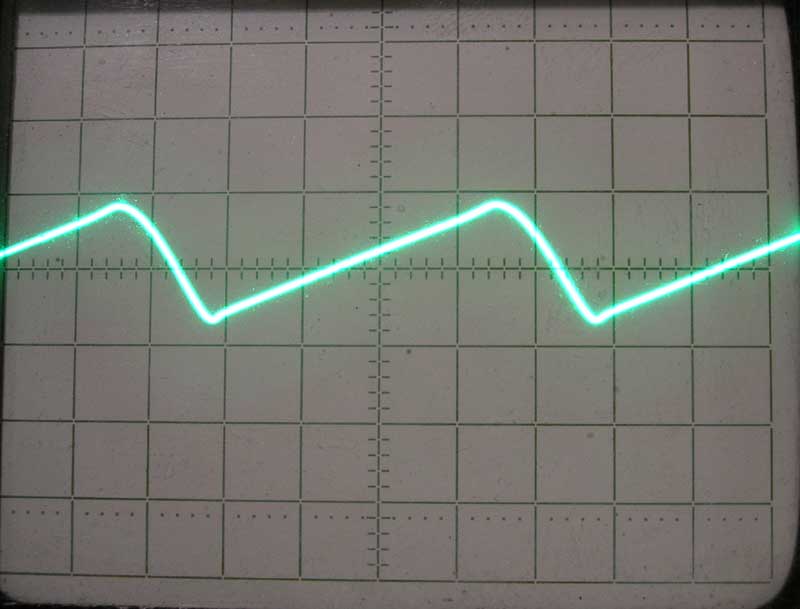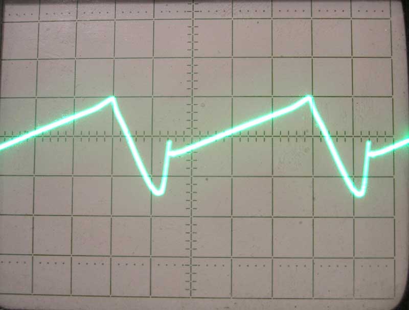 Вот фотки, чтоб наглядней было. Это без сердечников, шкала - 0.1В/дел. Там где кривые зубья - это напряжение на мостике.