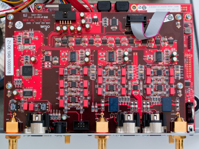 Вот на этом вложении https://forum.vegalab.ru/attachment....0&d=1322571371, где "мама" внизу, а плата ЦАПов вверху, видно, что между ними шлейф такой, многожильный плоский, с розовым проводочком, тянется. ИМХО это сигналы I2S + управление/конфигурация ЦАПами.