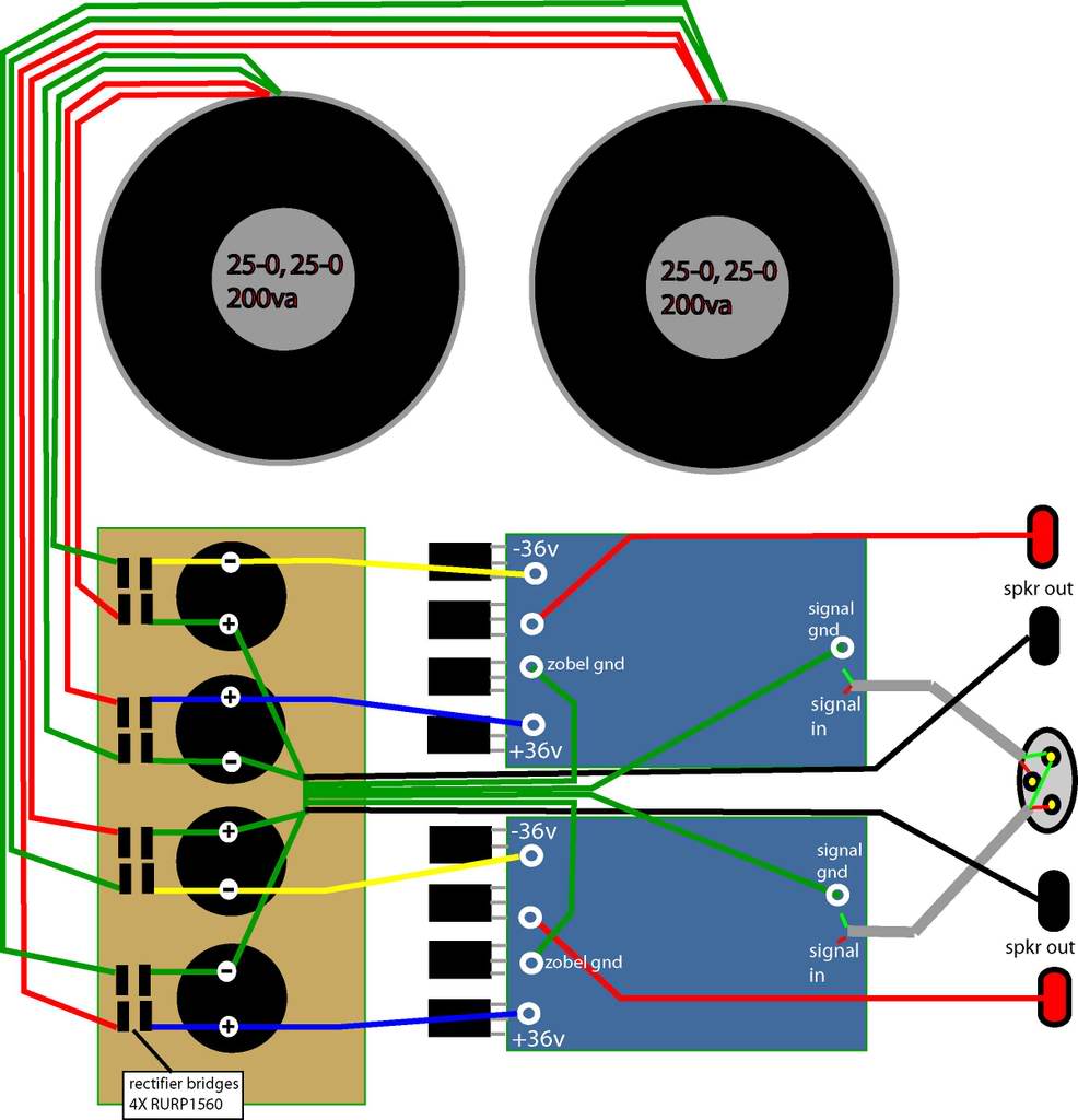 Планирую ставить 2 тора по 200 ватт с двумя вторичками, ведь платы питания двуполярные? Учитывая то, что усилок требует 40v то вторички на торе нужны 40/1,41=28v-0-28v на холостом ходу?