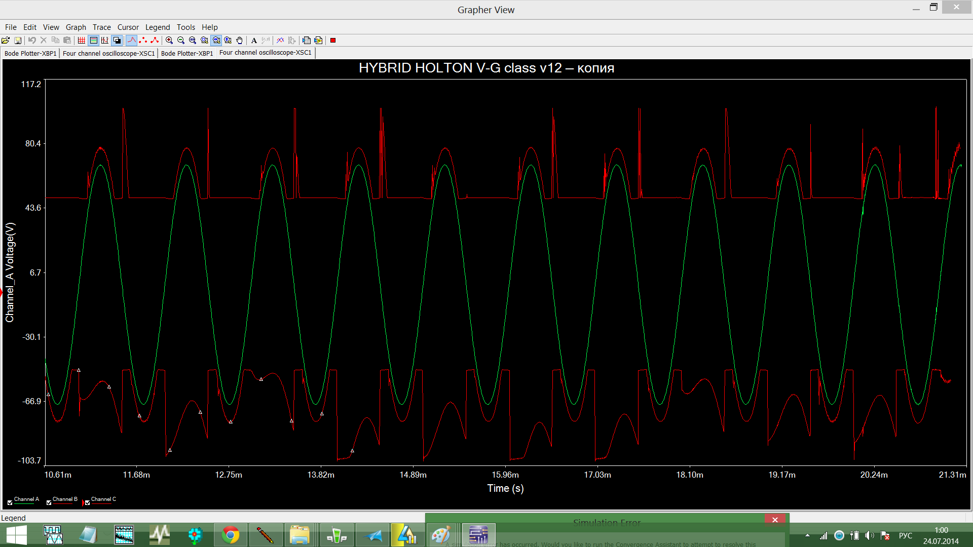 не знаю что там показывает симулятор, но если не поменять R54 на 18кОм!!! будет очень много огня, искр и дыма (Пост #101)