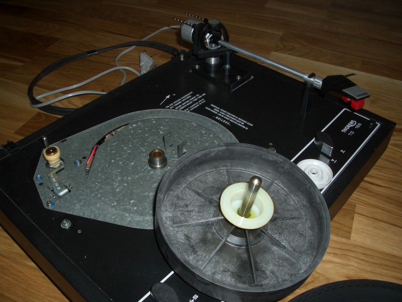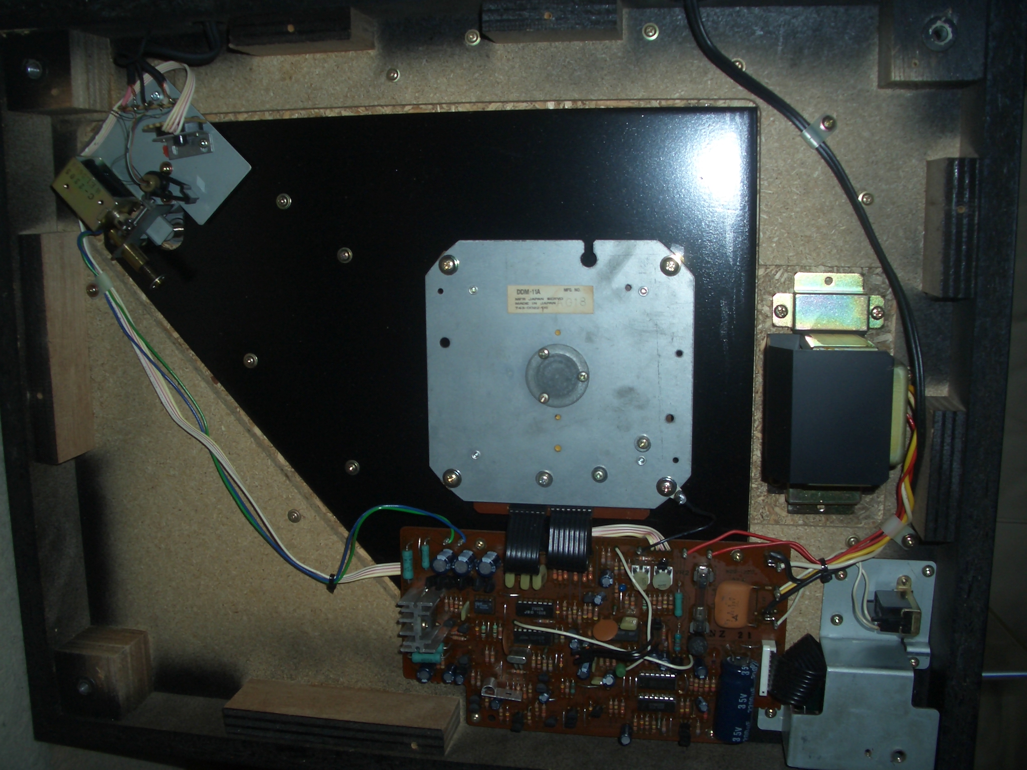 Трансформатор в двойном экране, его не слышно абсолютно. Двигатель крепится к стальной плите, которая служит еще и экраном от магнитного поля мотора. Из автоматики - автоматическое опускание арма и автостоп с автоподъемом. Автостоп решен с помощью оптопары и зеркала закрепленного на кронштейне арма.