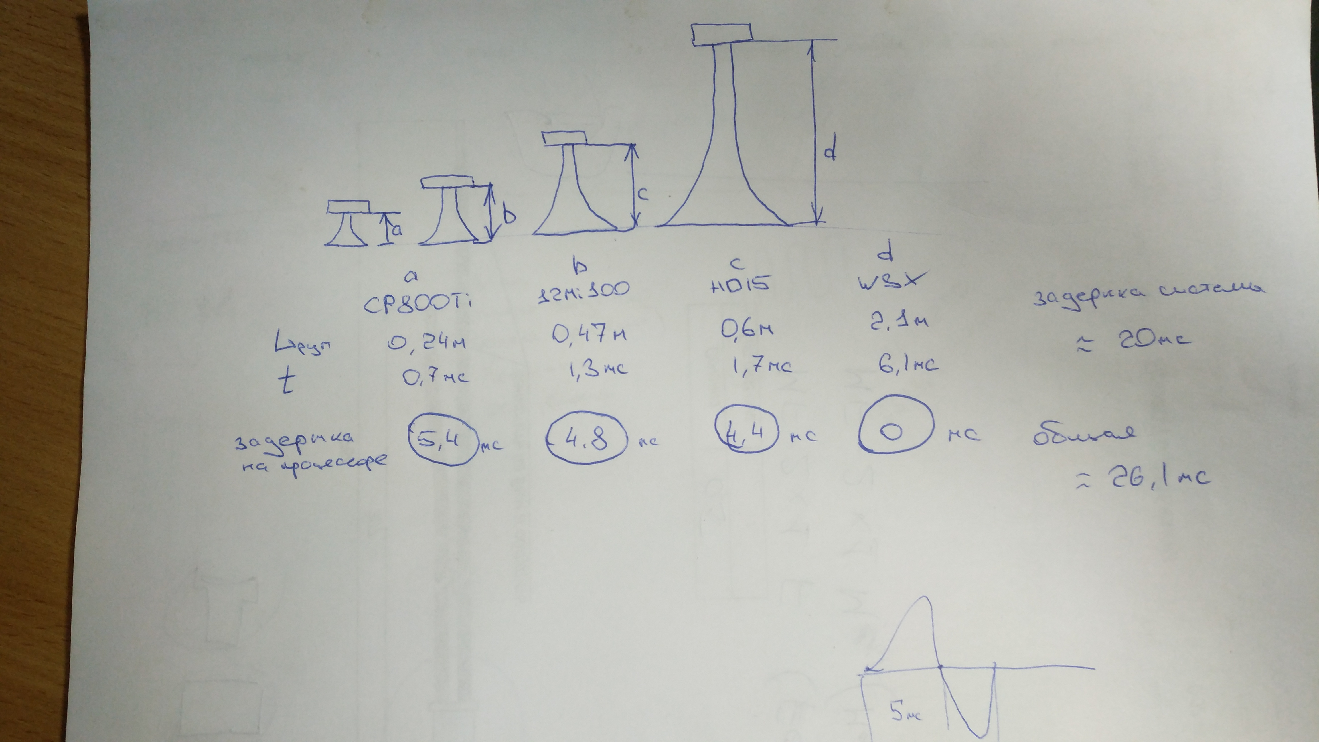 Имеется звуковая система: 2шт. МТ122, 4шт HD15 и 4шт WSX. Процессор xilica xp4080. Хочу понять алгоритм настройки для начала ФЧХ системы и задережек с помощью программы smaart. Набросал параметры рупоров(длины и задержки).