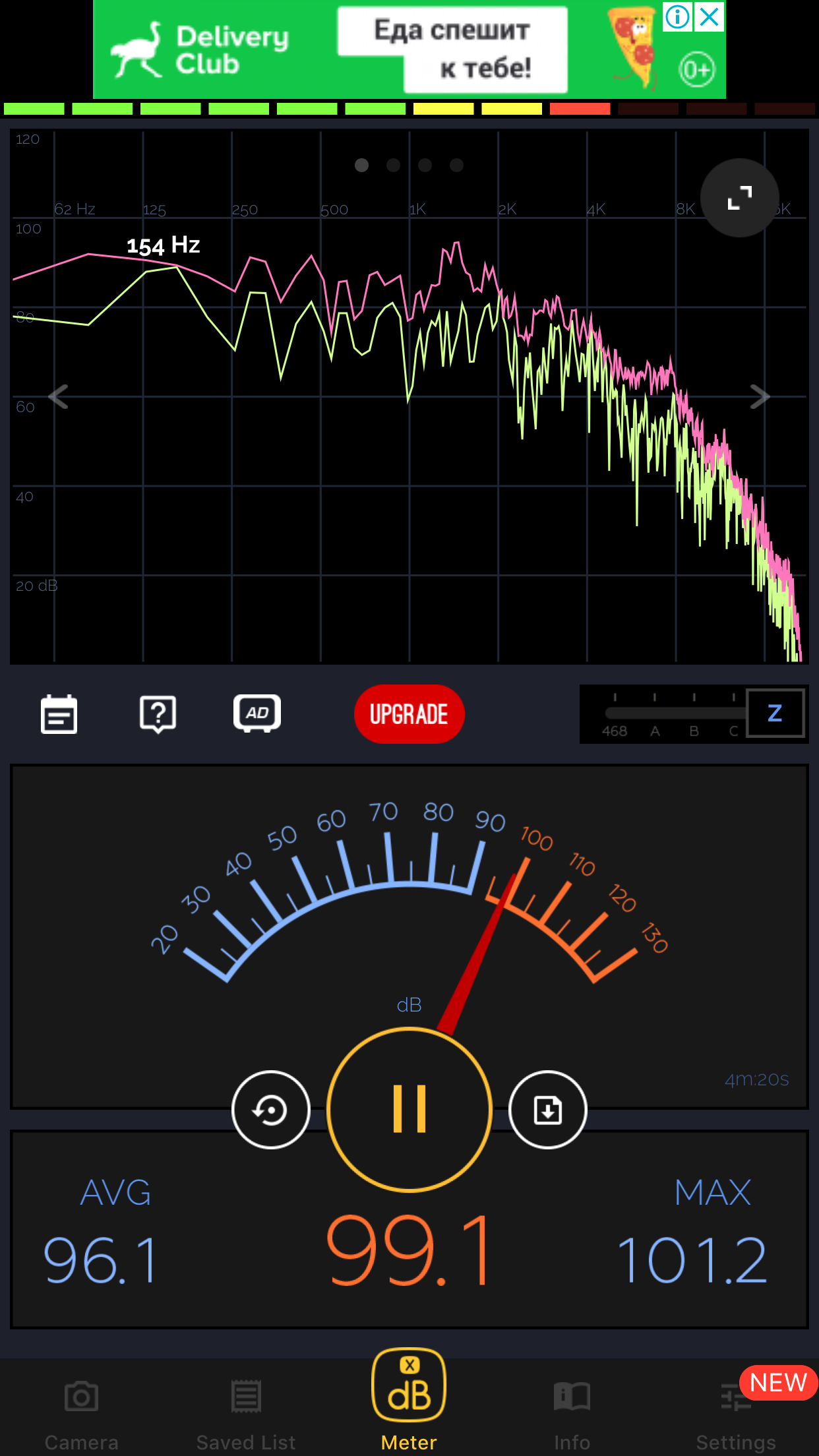 Пара принтскринов с места прослушивание (2,3 м от АС) на смартпрогу смартфона.