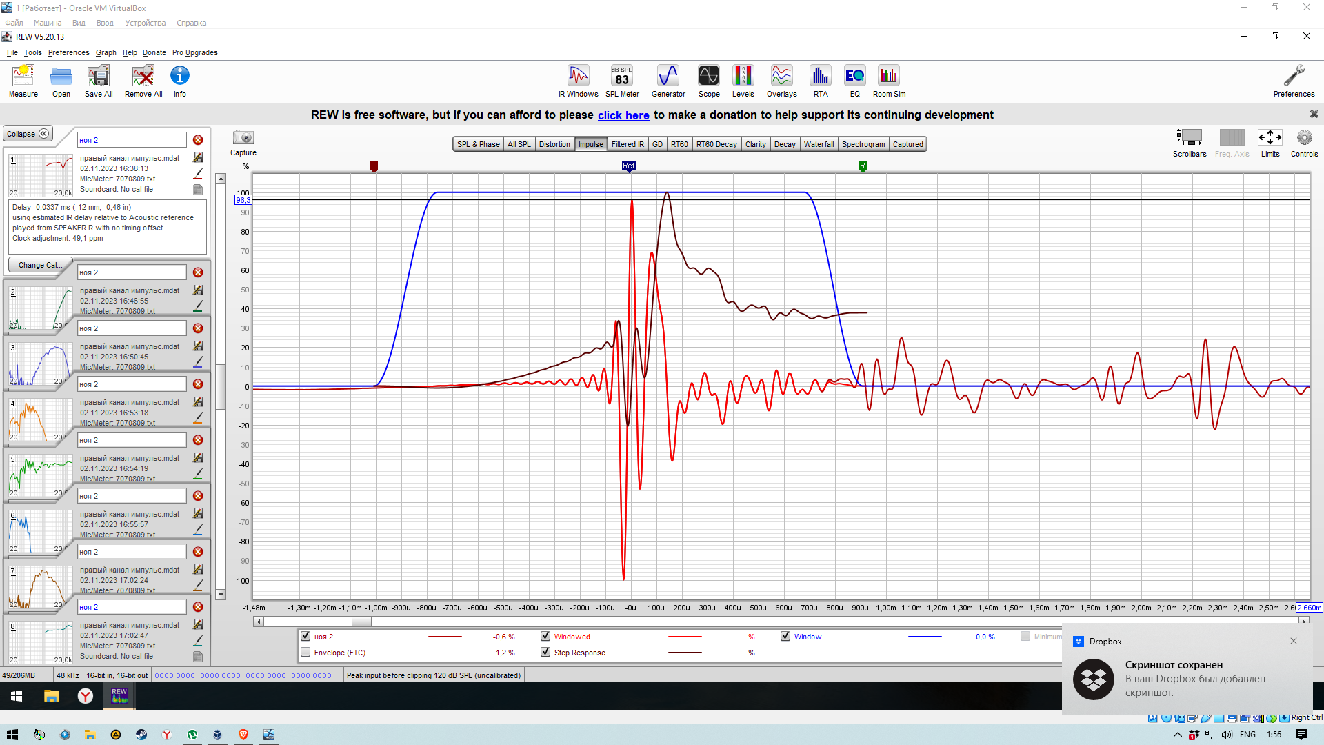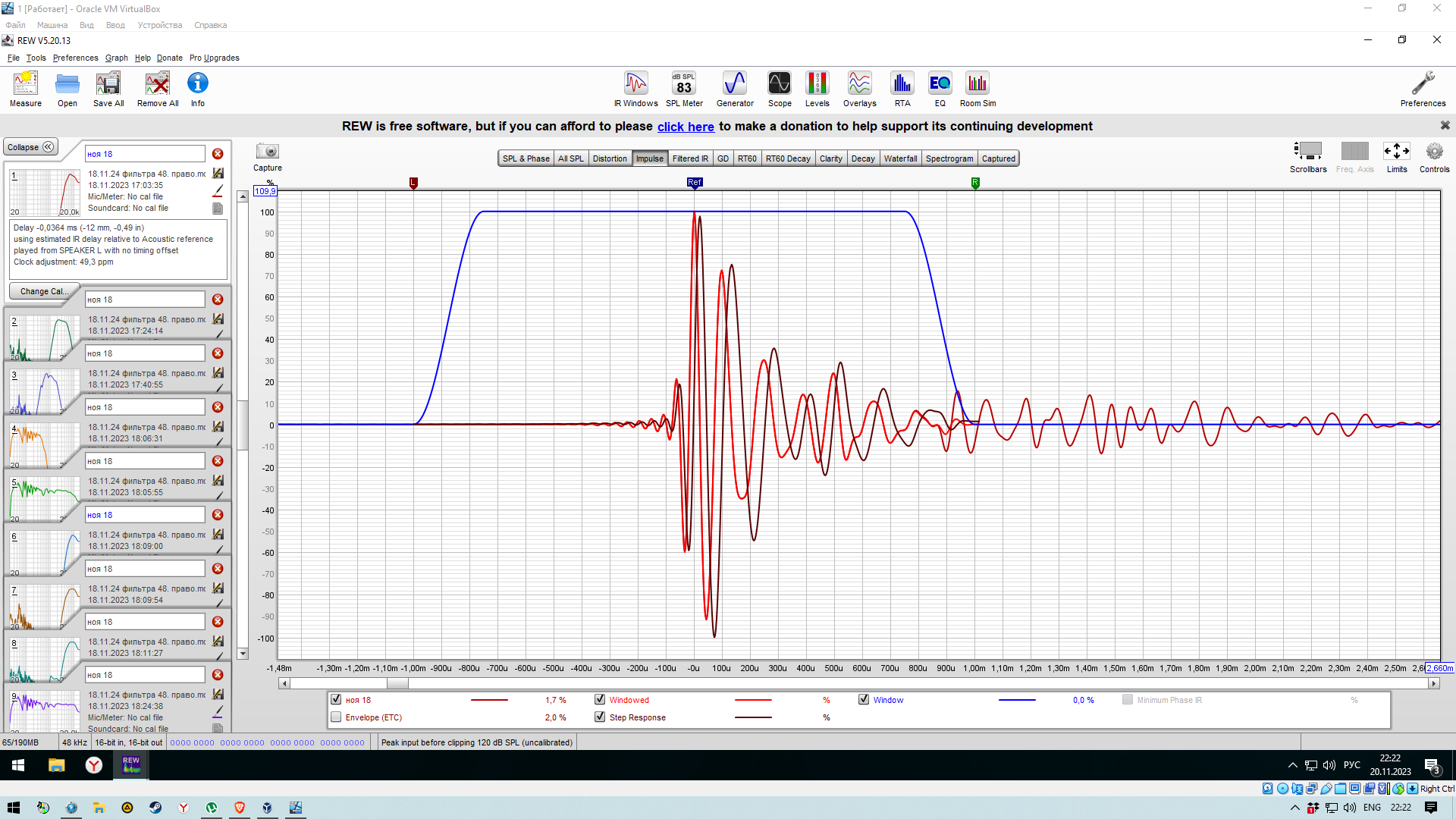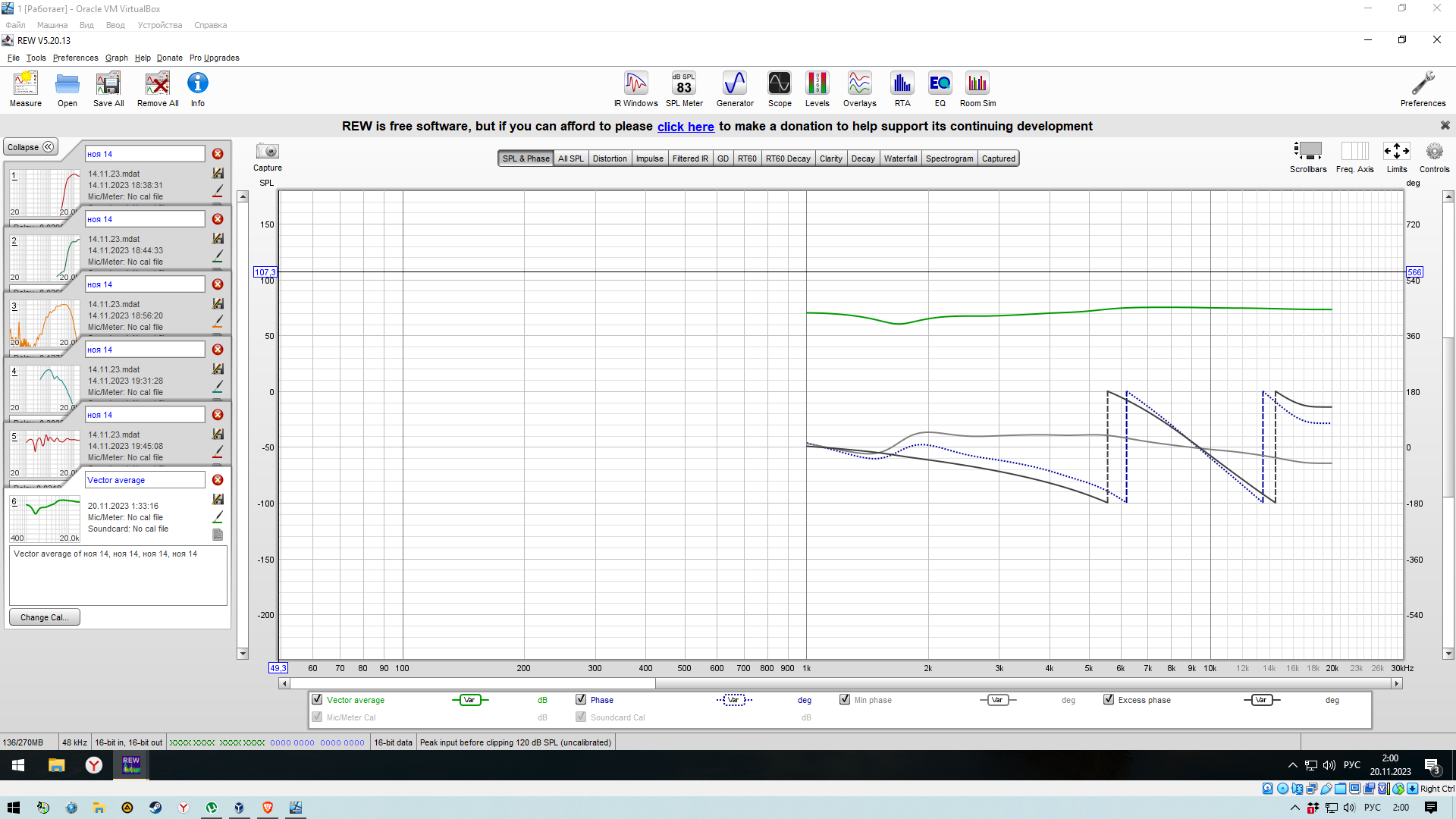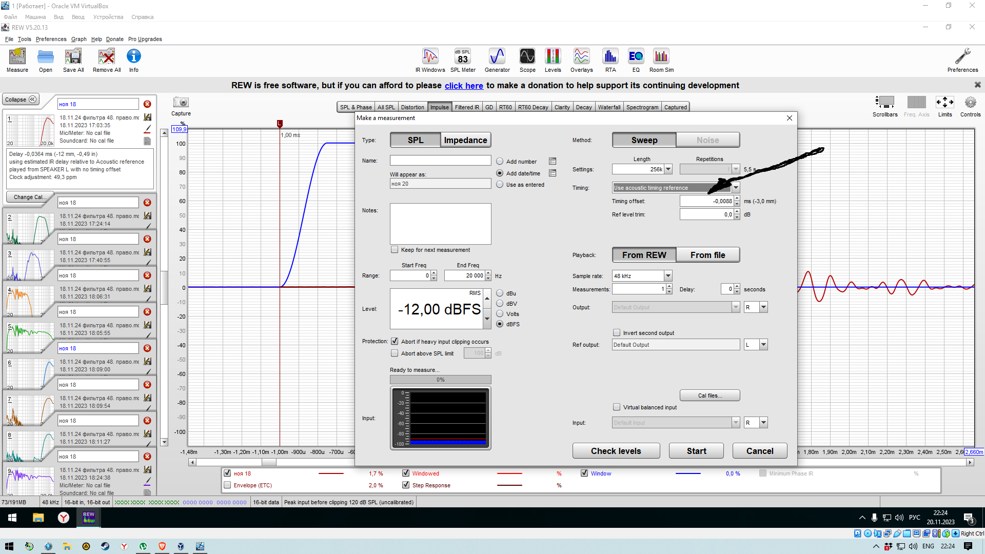 1. В VirtualBox я дома открываю REW, что бы проанализировать, снять скрины. На системе стоит видеокарта Vega 56. Из-за нее, скорее всего, не могу работать с REW. Нашел такой выход. (сама система в другом месте).