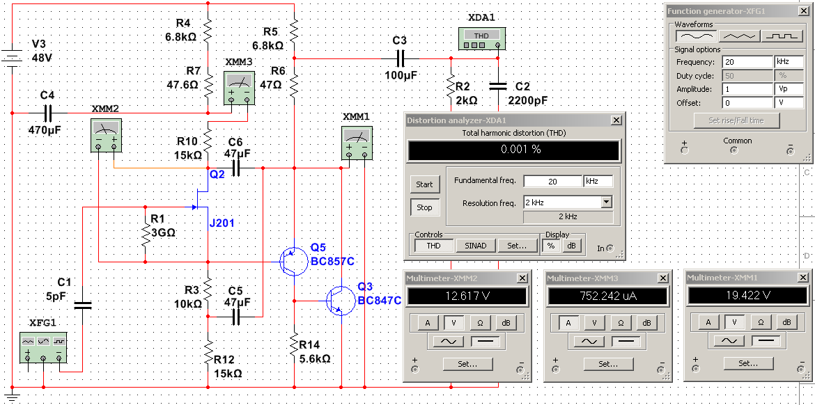 Ну тогда ещё вопрос в догонку. Если заморачиваться с подбором резисторов, то какова стратегия оптимизации режимов работы схемы? Что будет критерием наилучших ТХ? Я так понимаю, что R10=R12. Как R3 с ними соотносится? Какого напряжения добиваться между СИ полевика?