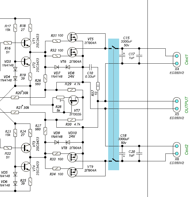 Поэтому, хочу представить моё видение бюджетного и более простого в повторении усилителя. Не в плане настройки, а в трудоёмкости и ценообразования. Полевики так же подбирать-тестировать надо, так же выставлять ноль на выходе и токи покоя...