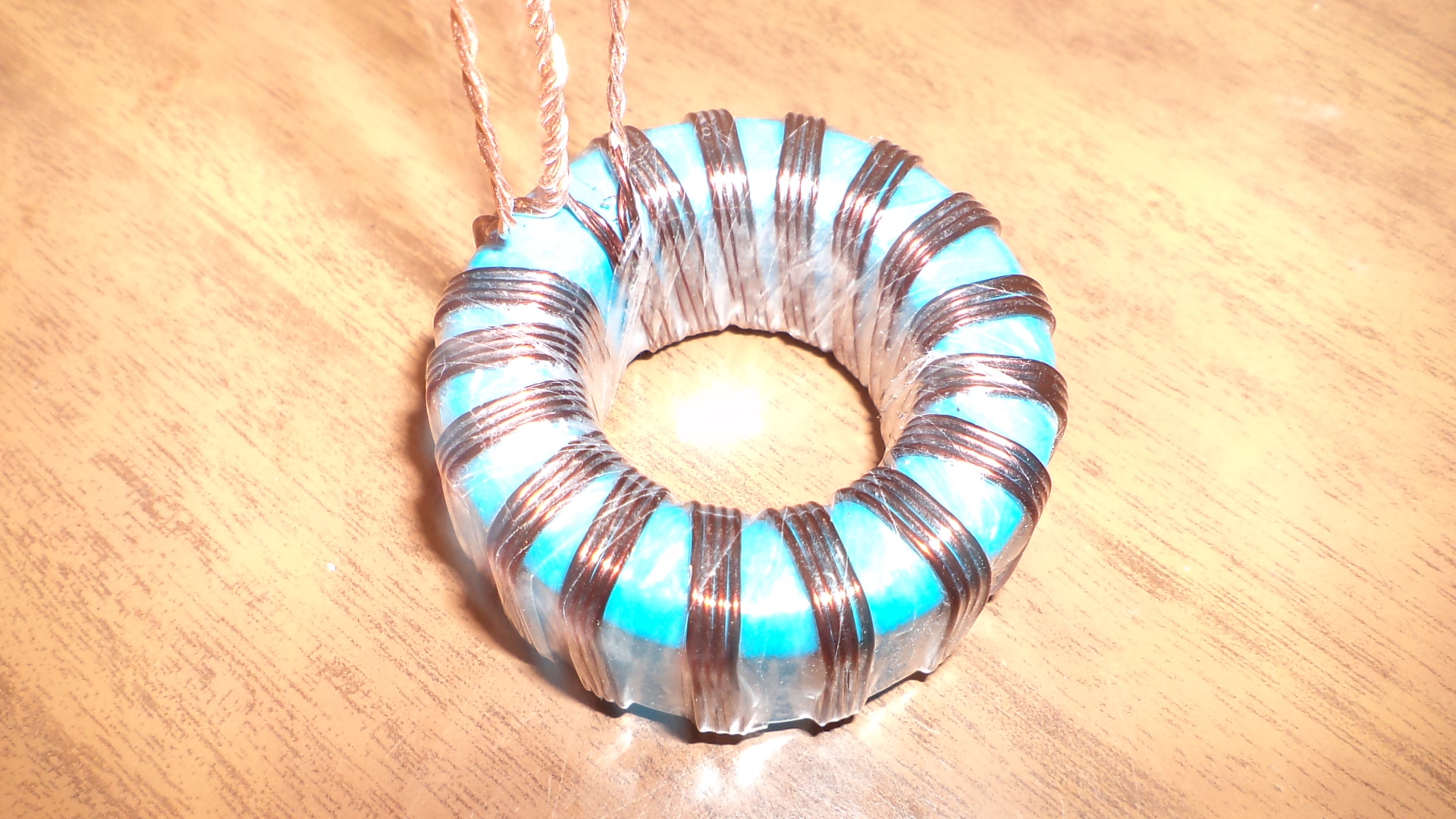 Перед намоткой острые грани кольца необходимо обточить, чтобы исключить факт повреждения лаковой изоляции на медной проволоке. Я бы еще посоветовал обмотать само кольцо несколькими слоями лакоткани для большей надежности. Именно так я и поступил.