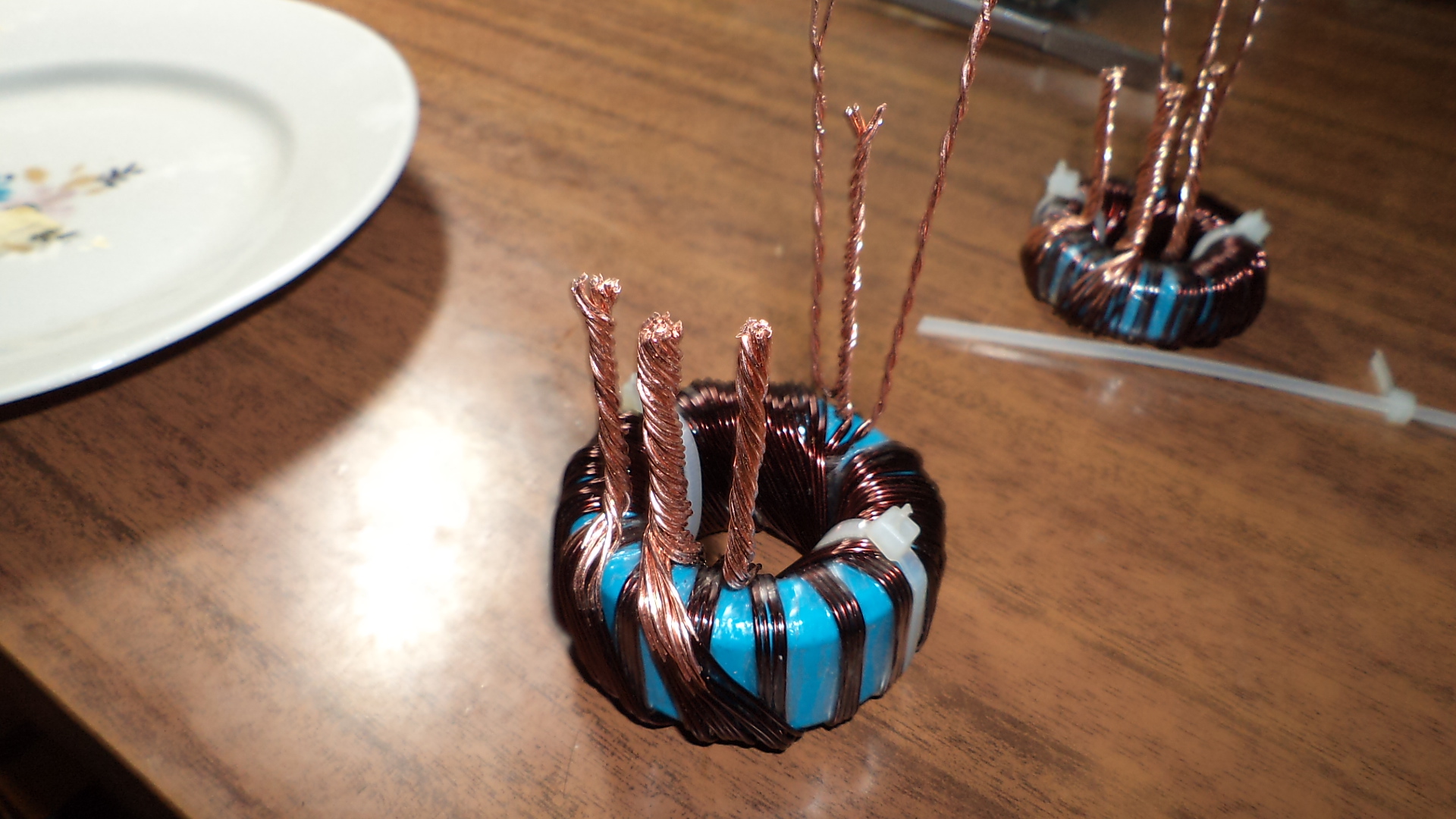4+4 витка первичка, 0,8 мм х 8 жил.