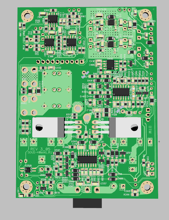 Схема уже была отработана ранее, но прошлая партия была сделана до того, как я начал заказывать платы на производстве, потому пришлось сильно переработать ПП в плане оптимизации под бюджетную сборку. Первый вариант был с плотным двухсторонним монтажом, теперь 95% SMD на нижней стороне.
