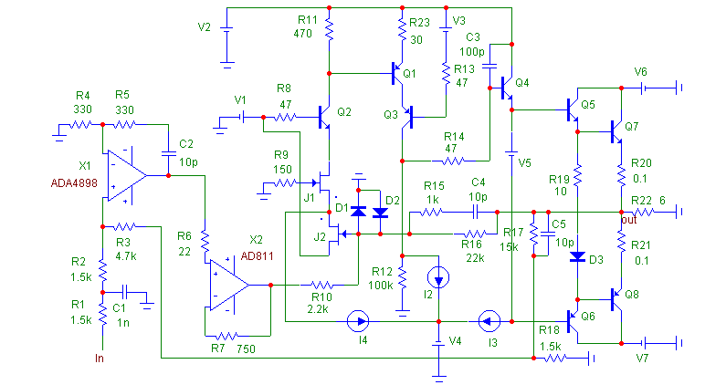 По мне лучше обычный ТОСник по выходу, чем такой ужас (засвистит всё это только в шорох). Кстати, с обычным ТОСником в микрокапе получаются искажения под минус 150 дБ до 40-50 кГц. Спрашивается куда лучше раз Вам с .Васильев*ым нравятся усилители с многопетелевой ООС.