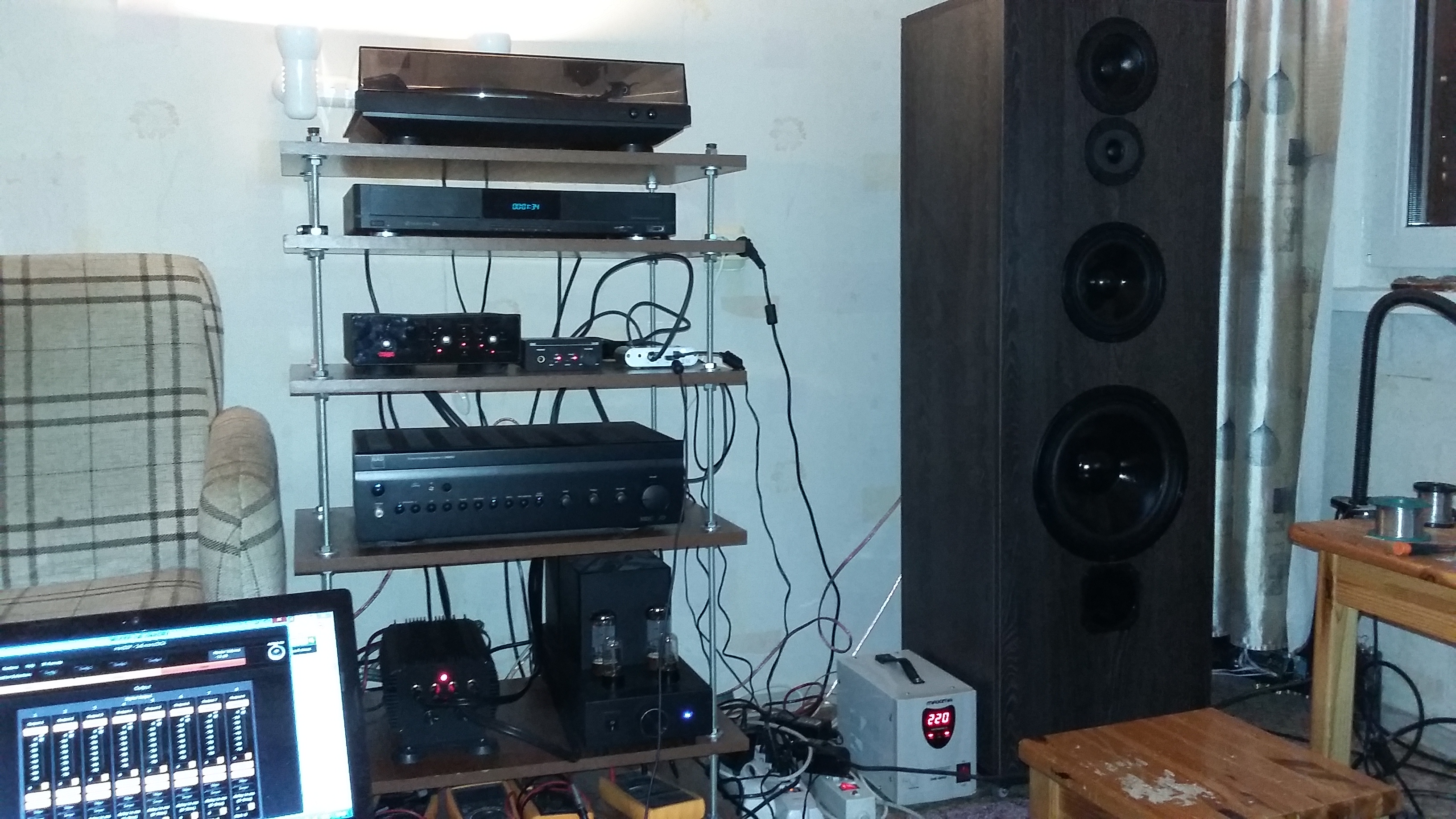 NAS -> CambridgeAudio NP30 -> оптика -> miniDSP 4x10 HD -> 3 x Audiomaniac + T4 -> Discovery