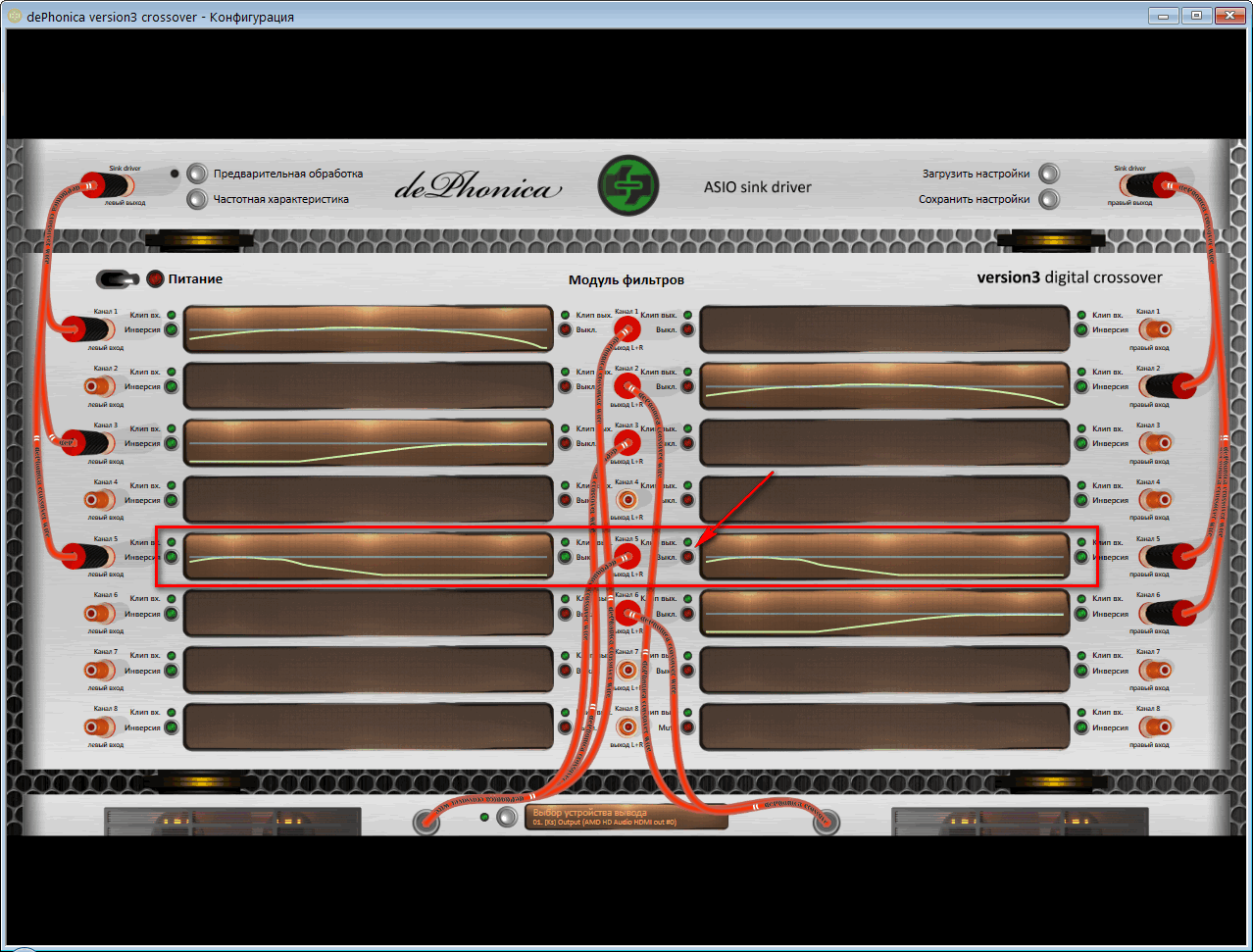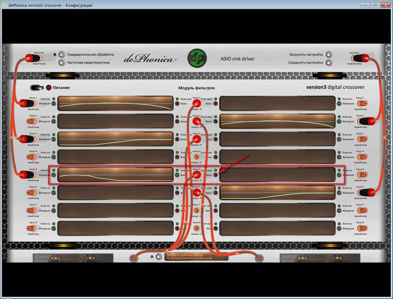 A: Кроссовер можно использовать для того, чтобы вывести один и тот-же сигнал (с обработкой или нет) на несколько выходов многоканальной звуковой карты. Например, первые 2 канала – звук для колонок, следующие 2 канала – звук для наушников. На колонки одни настройки эквалайзера (внутри кроссовера), на наушники – другие.