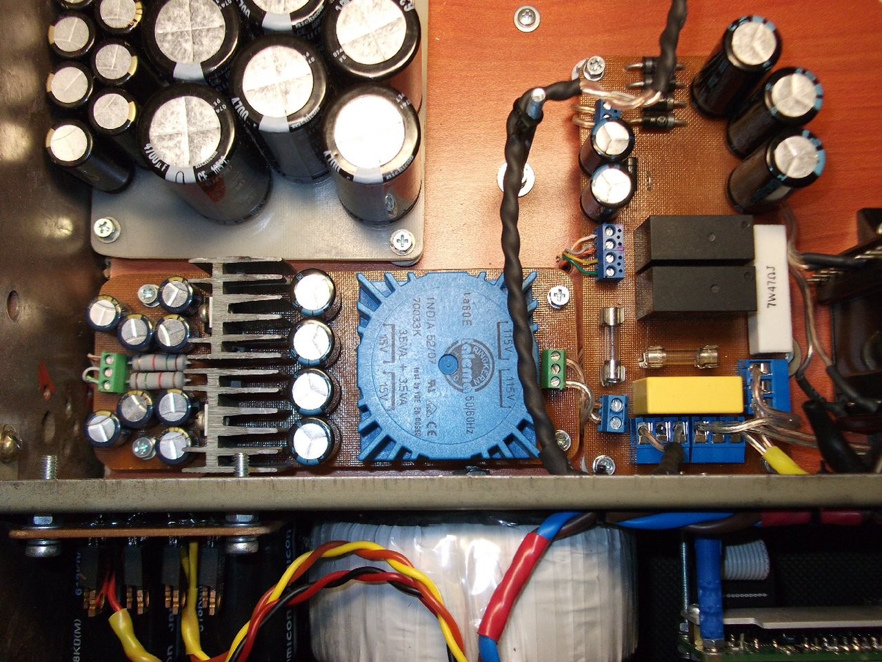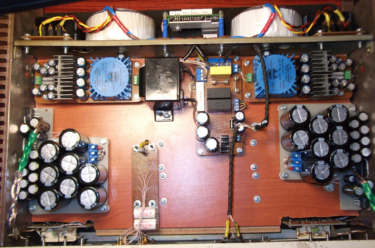 Принципиальная разница с "обычным" ZD-50 - то, что усилитель фактически поделён на две части. Как - можете увидеть на картинке. В моей реализации еще добавилось и то, что усилители "сдвоенные", для активной двухполоски, да еще и платы малосигнальной части совмещают с собой кроссоверы и питаются от более чистого БП. Вот как-то так, сумбурно. описал...