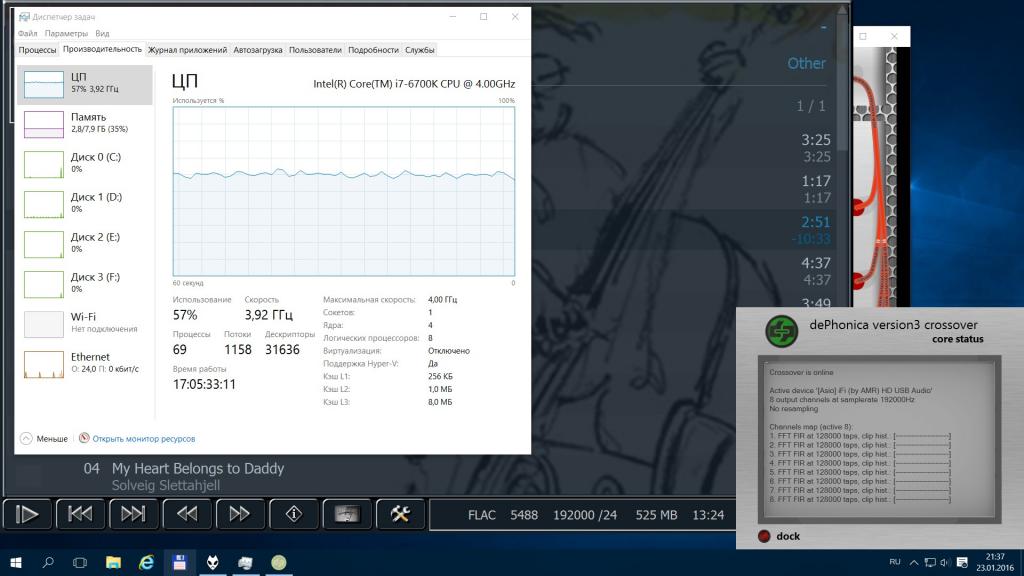 - низкая задержка: около 50 мсек при использовании IIR фильтров и выводе на ASIO устройство