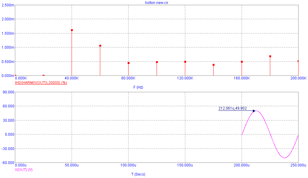 2. На выводы о низкой динамике каскада указывают режимы по постоянному току. При питании 50В и напряжении на коллекторах 47В - какой максимальный уровень можно снять? Не более 1В? При таком питании? А, смысл?