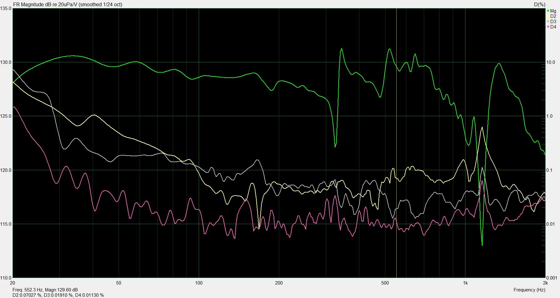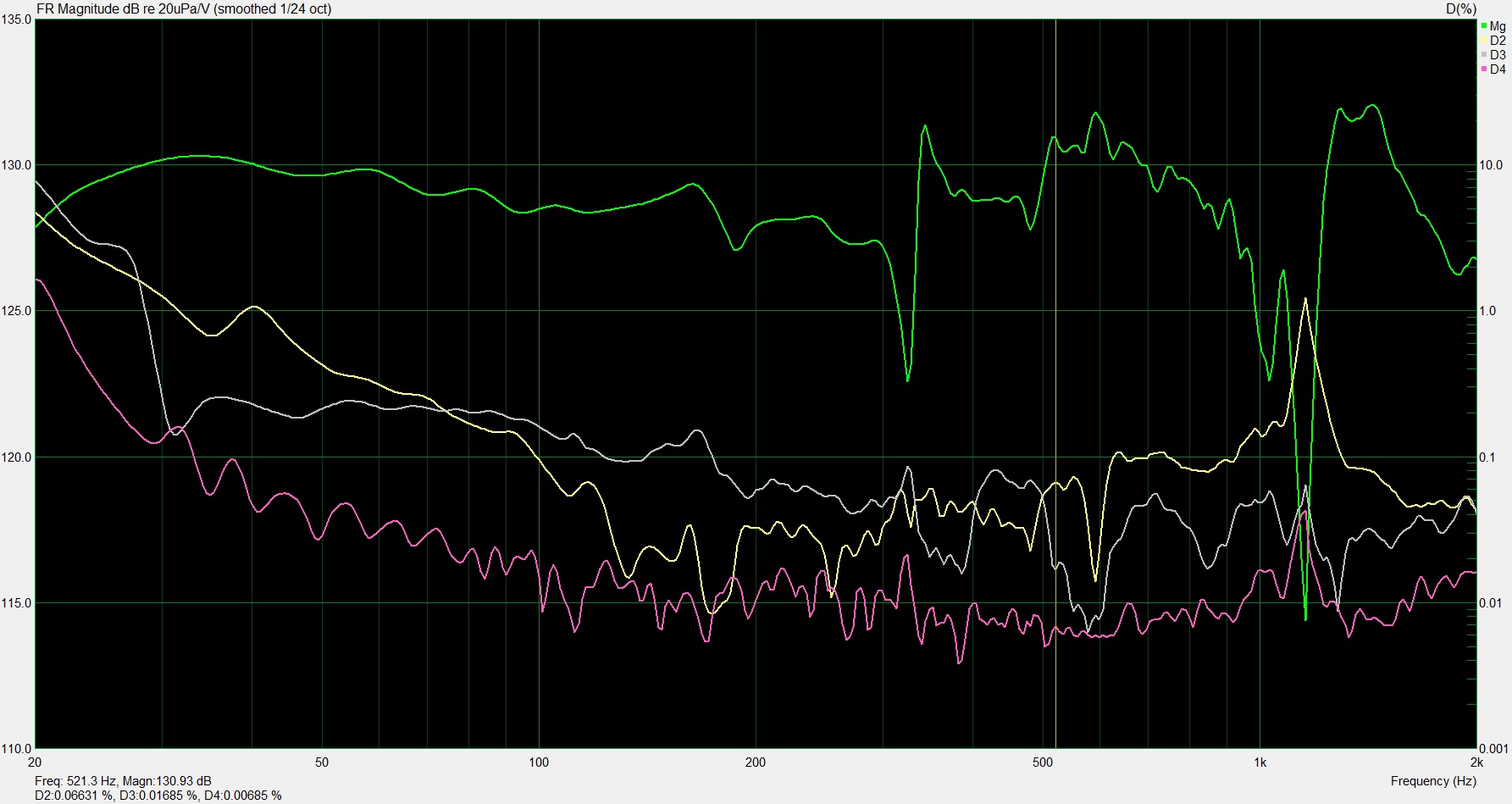Попробовал прицепить катушку индуктивности 1мГн к 26W4867. Как и ожидалось на уровне погрешности измерений. Я это связываю с тем, что данный динамик в отличии от жестких аккутонов по топологии ближе к Satori, т.к. имеет аналогичный провал где-то около 1кГц. Особенно заметно, если вешать датчик на катушку (картинку прицепил). Цеплять большую индуктивность уже будет влиять на бас или нужна гигантская.