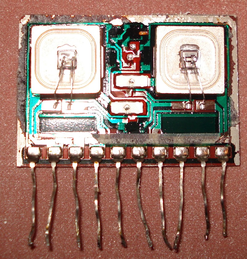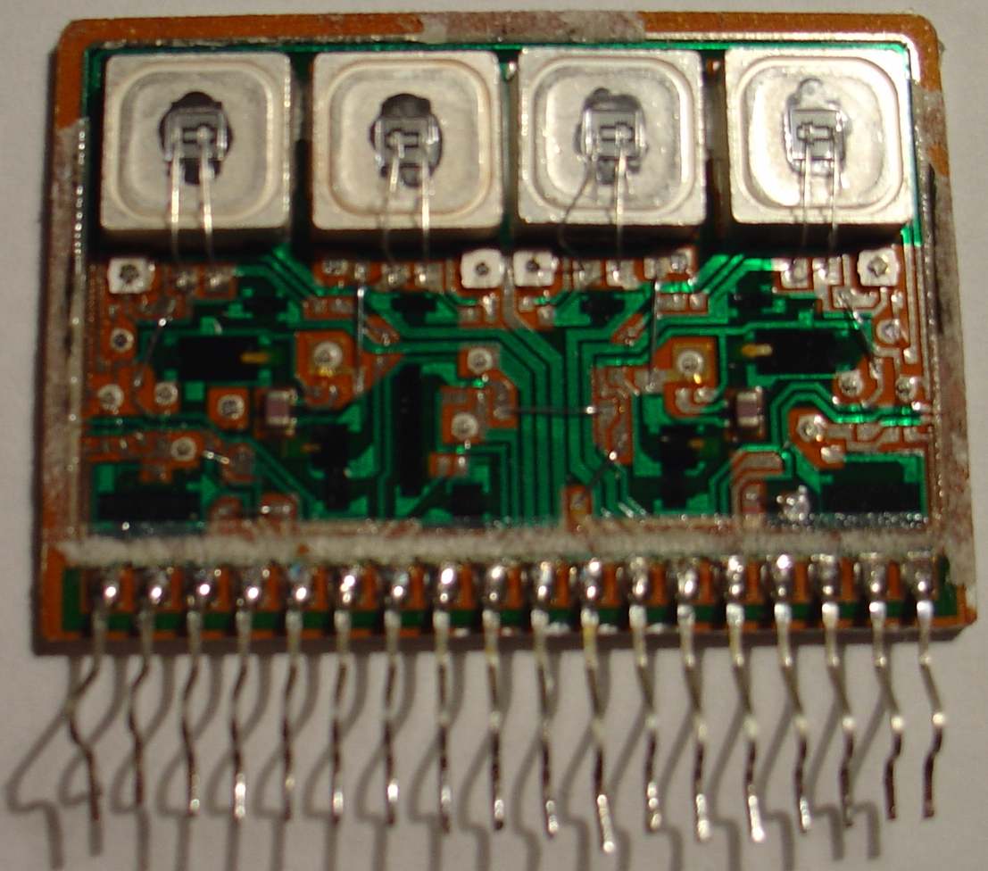 Для начала вводная - это не микросхема, это гибридная интегральная схема. Толстоплёночная. Конских размеров.