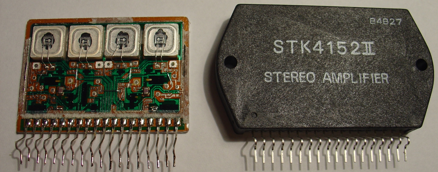 Все вышеописанные серии, кроме мацушитовских были выпилены из производства, STK вышли в финал и успешно клепаются для Пионера, Ямахи и кенвуда (это все проверенные данные). Ранее можно было увидеть на них наглую надпись Technics или Yamaha, хотя делает все же Sanyo. Есть подозрения, что для Кенвуда ранее гибридки делала SanKen - очень похоже, исходя из чертежей, съемной крышки из стали или алюминия и увесистой пластины радиатора.