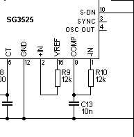 kvazi, что бы отключить ос, (если в вашем случае это вообще можно называть ос, вы что даташита на 3525 не видели??), вам нужно соединить пин 1 с пин 12, а пин 2 с пин 16. И второе, я вижу минимально рекомендуемую для 3525 ёмкость Ст=1нф, у вас 470пф, вероятно это работает, но чего ради выходить за грань рекомендаций производителя, если ваша частота не столь высока (порядка 70к)? Третье, рс817 имеет так себе коэффициент передачи тока, поэтому тянуть ей 5в через 470ом не легко будет, тем более, что вы практически исключили из петли усилитель ошибки в 3525, соединив пин 1 с пин 9 Вот такое имхо, дорогие мои, хорошие..
